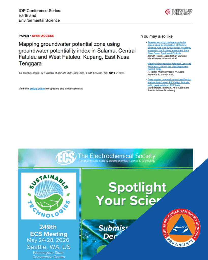 Mapping groundwater potential zone using groundwater potentiality index in Sulamu, Central Fatuleu and West Fatuleu, Kupang, East Nusa Tenggara