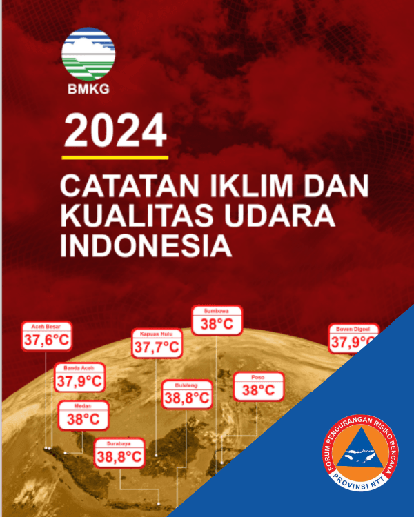 Dokumen ini merupakan laporan tahunan BMKG mengenai kondisi iklim dan kualitas udara di Indonesia sepanjang tahun 2024, mencakup fenomena global seperti ENSO, IOD, dan Monsun, serta tren suhu, curah hujan, dan kualitas udara yang berdampak pada kesehatan, lingkungan, dan pembangunan. Bagi wilayah timur Indonesia termasuk Nusa Tenggara Timur, laporan ini menunjukkan adanya anomali suhu lebih tinggi akibat El Niño kuat, berkurangnya curah hujan yang memicu kekeringan, serta penurunan kualitas udara karena kebakaran hutan dan lahan di musim kemarau, sehingga menegaskan pentingnya langkah adaptasi dan mitigasi perubahan iklim khususnya untuk sektor pertanian dan kesehatan masyarakat di NTT.