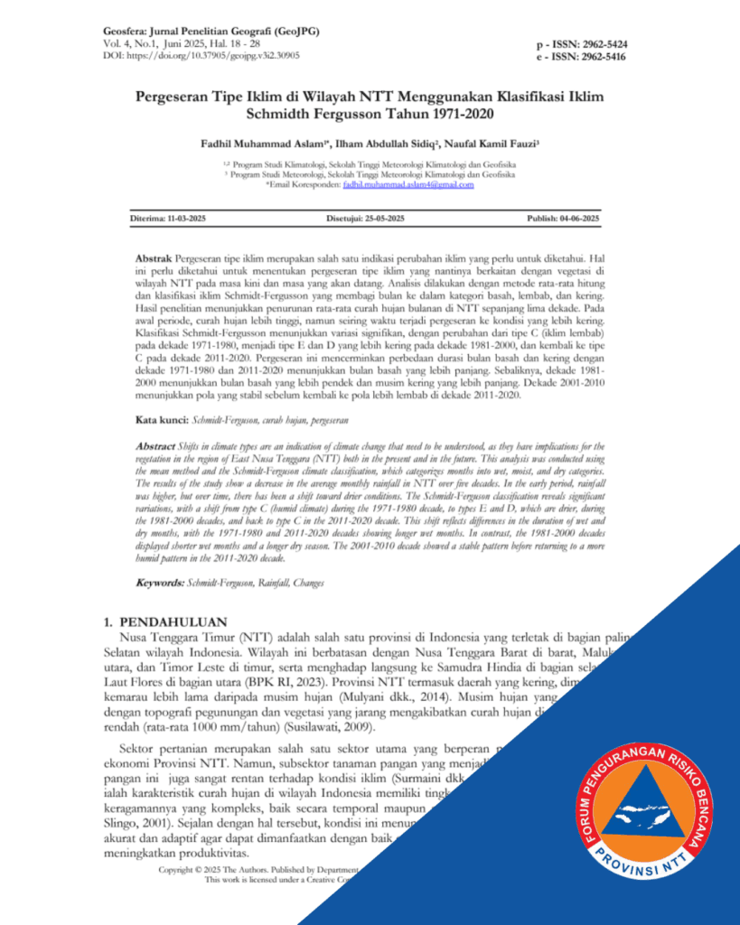 Pergeseran Tipe Iklim di Wilayah NTT Menggunakan Klasifikasi Iklim Schmidth Fergusson Tahun 1971-2020