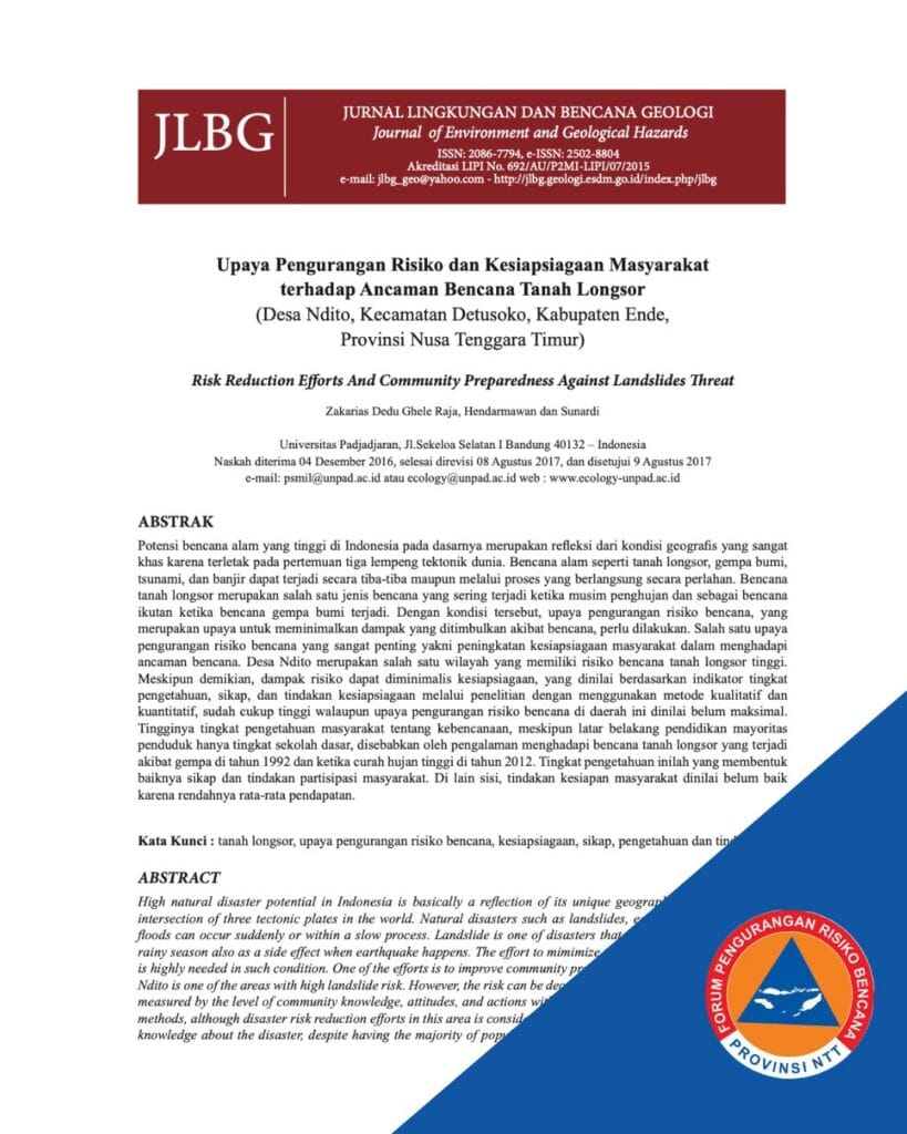 Upaya Pengurangan Risiko dan Kesiapsiagaan Masyarakat terhadap Ancaman Bencana Tanah Longsor (Desa Ndito, Kecamatan Detusoko, Kabupaten Ende, Provinsi Nusa Tenggara Timur)