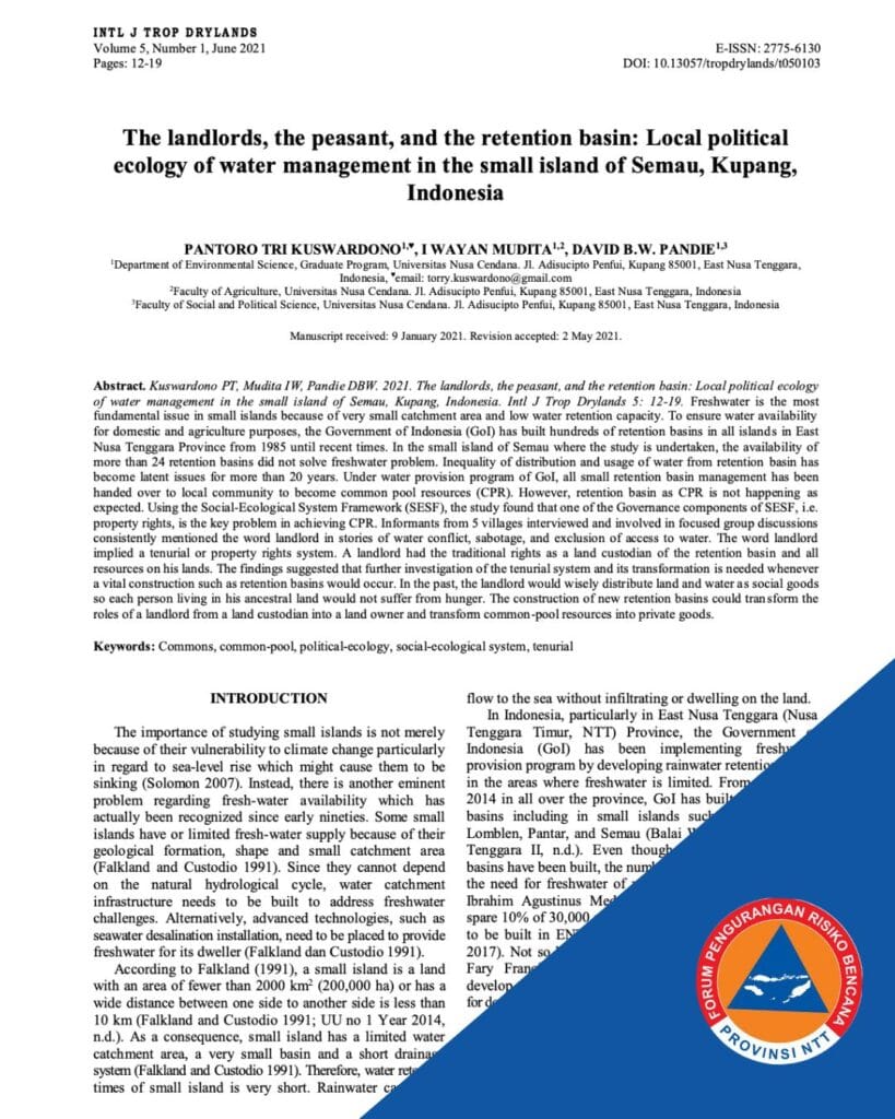 The landlords, the peasant, and the retention basin: Local political ecology of water management in the small island of Semau, Kupang, Indonesia