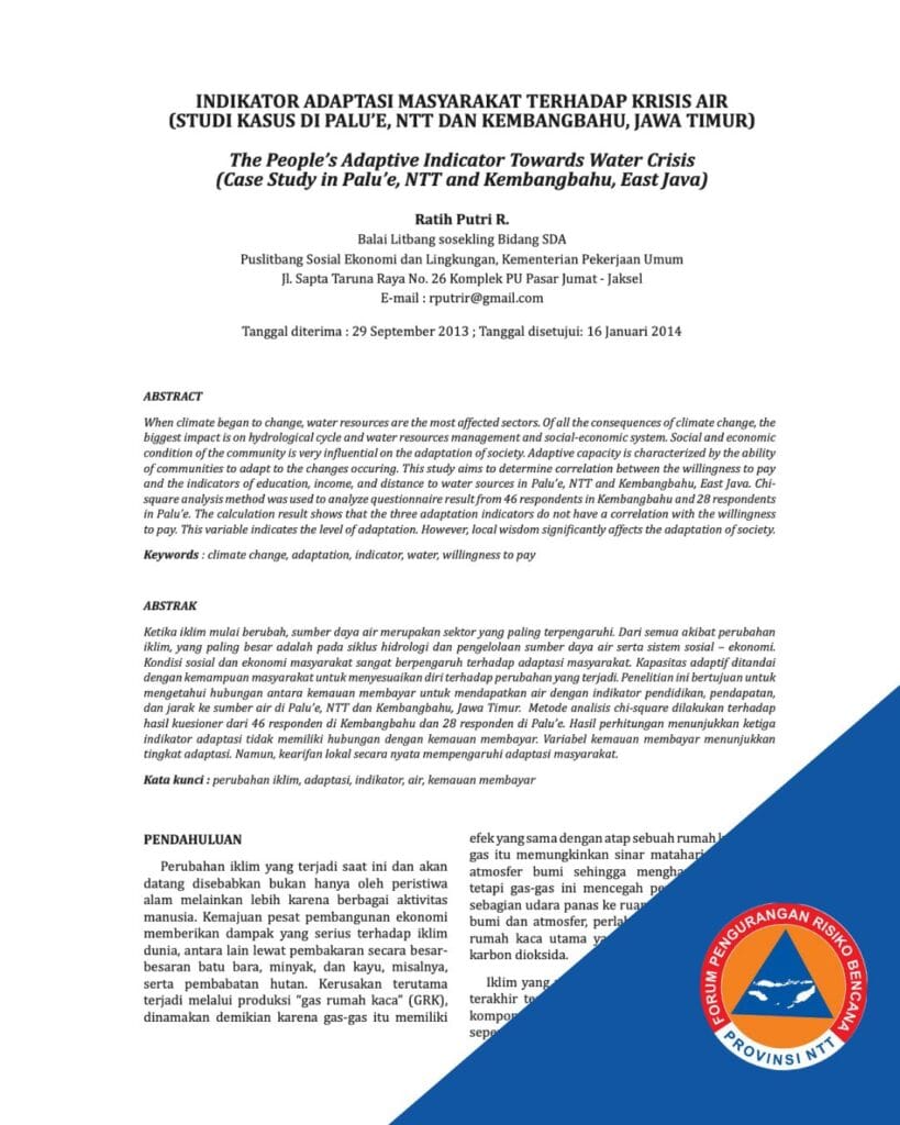 Indikator Adaptasi Masyarakat Terhadap Krisis Air (Studi Kasus di Palu’e, NTT dan Kembangbahu, Jawa Timur)