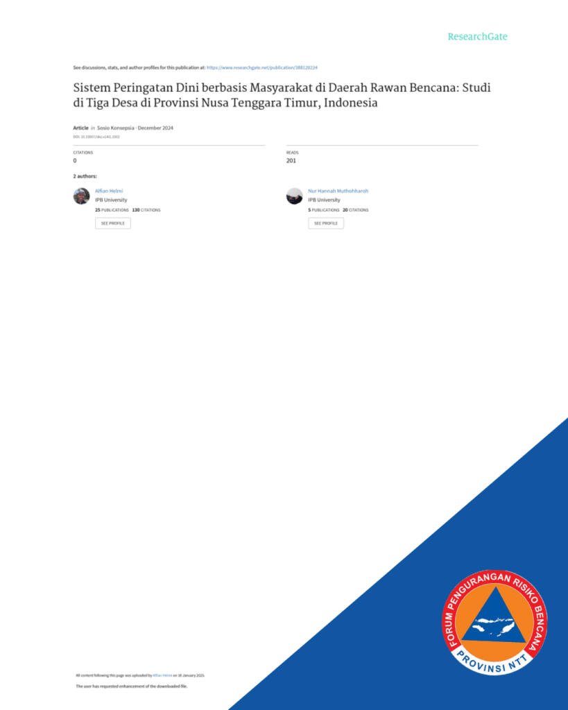 Sistem Peringatan Dini berbasis Masyarakat di Daerah Rawan Bencana: Studi di Tiga Desa di Provinsi Nusa Tenggara Timur, Indonesia
